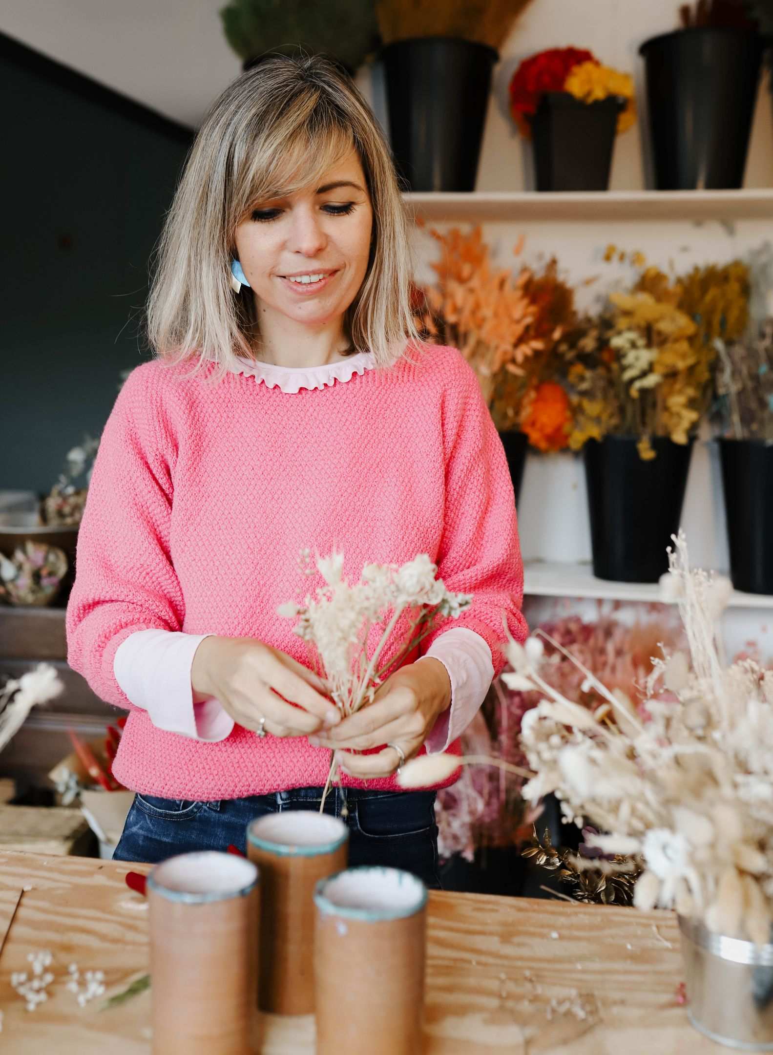 Comme le nom ne l’indique pas, derrière Sœurettes, il n’y a que moi, Amélie Ermenault Martin. Journaliste pendant plus de quinze ans, j’ai démarré chez TF1, avant de devenir rédactrice pour les éditions locales de tout un tas de magazines bien connus. Et pendant plus de quinze ans, je répétais à qui voulait l’entendre que si je n’avais pas été journaliste, j’aurais été fleuriste. En 2020, j’ai finalement décidé de faire de cette lubie une réalité !