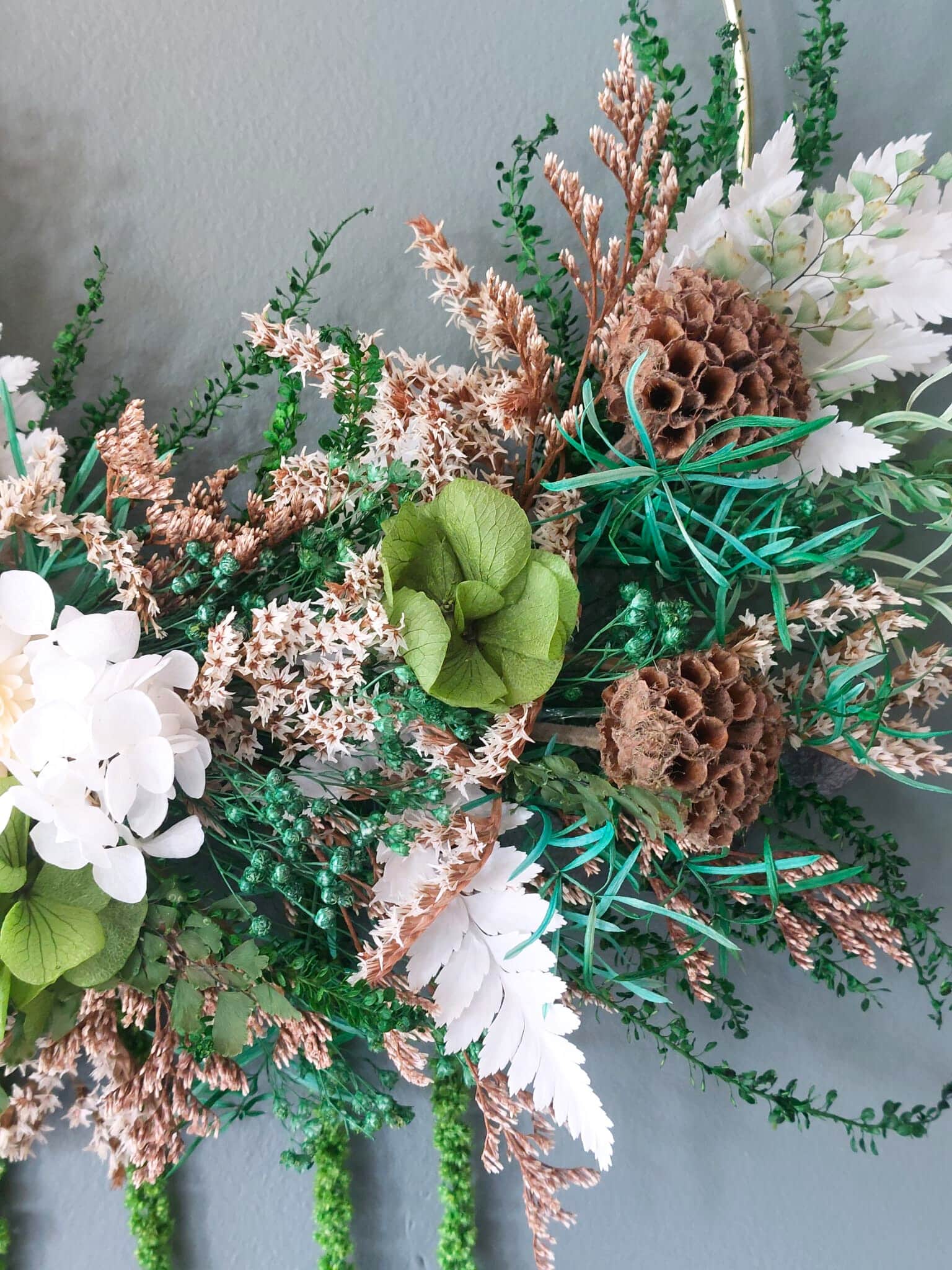 • Couronne de fleurs séchées et stabilisées