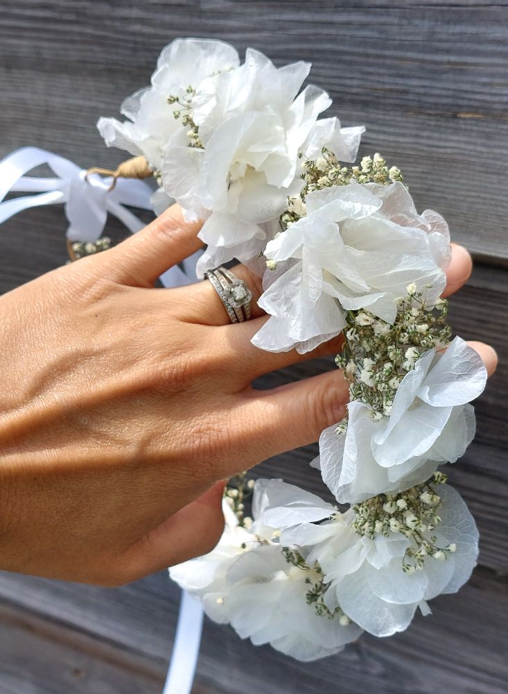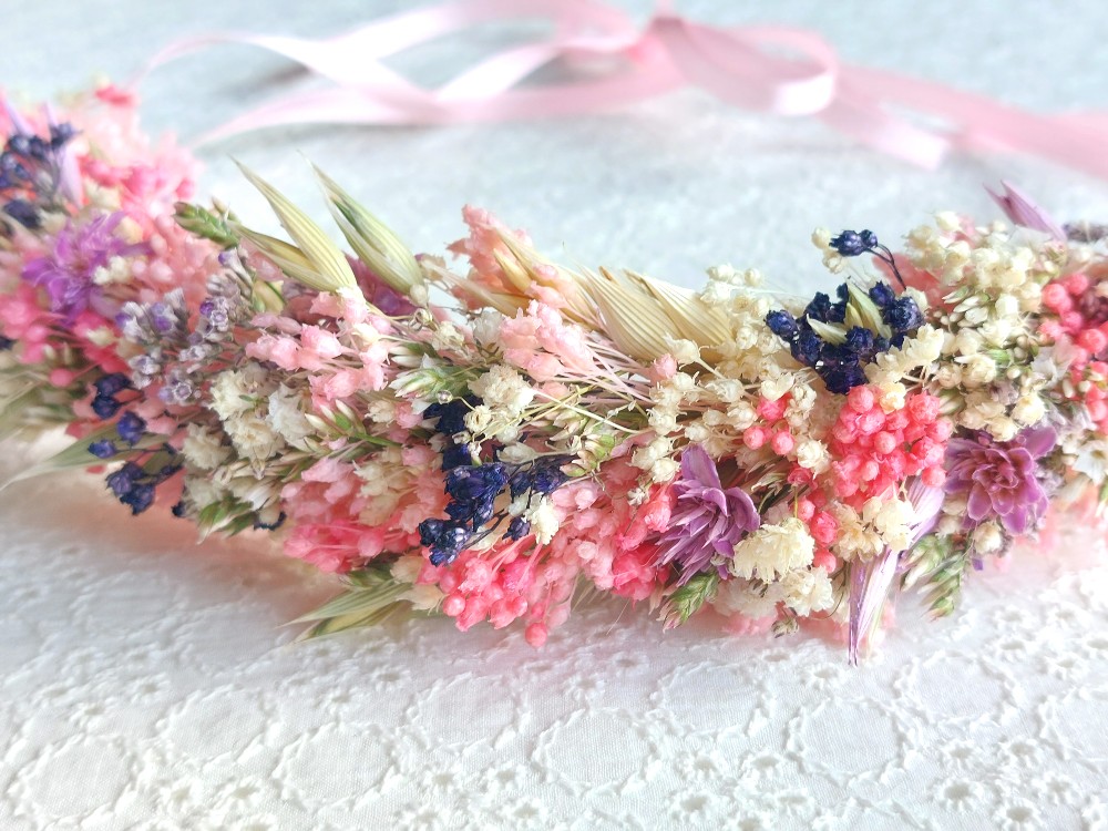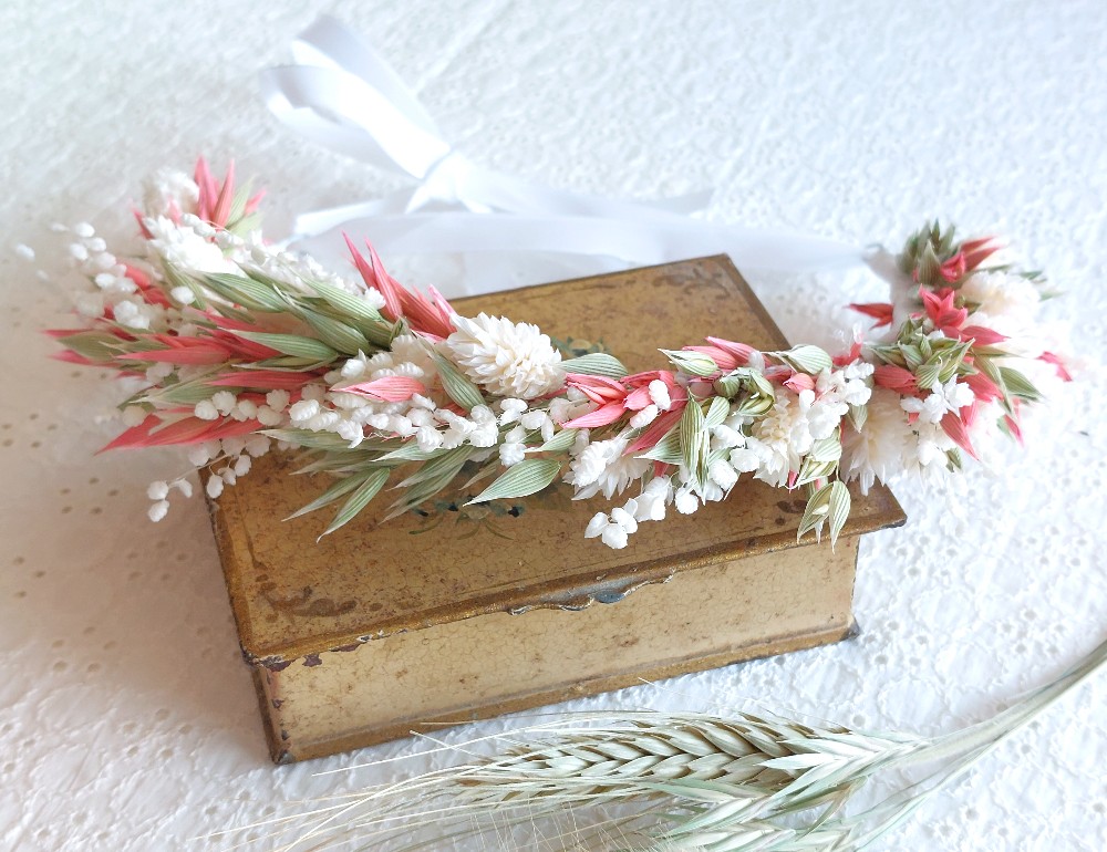 Le couronne de tête en fleurs séchées est l’un des accessoires pour cheveux les plus romantiques.