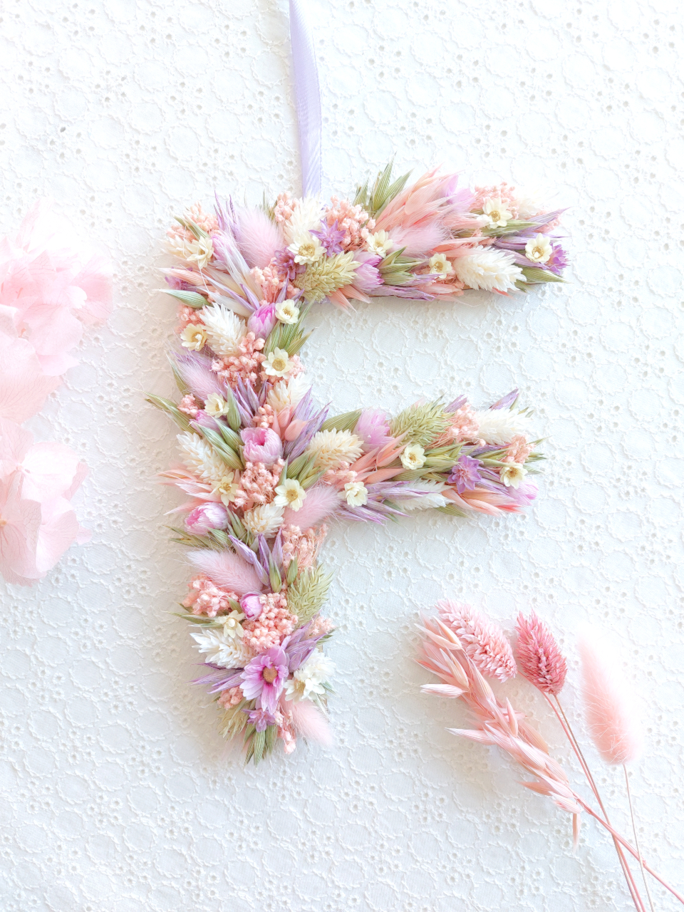 Les lettres ornées de fleurs séchées sont un cadeau personnalisé parfait. Cadeau de naissance, cadeau d’anniversaire ou encore cadeau de communion, les lettres fleuries apporteront une touche fleurie délicate à votre décoration.
